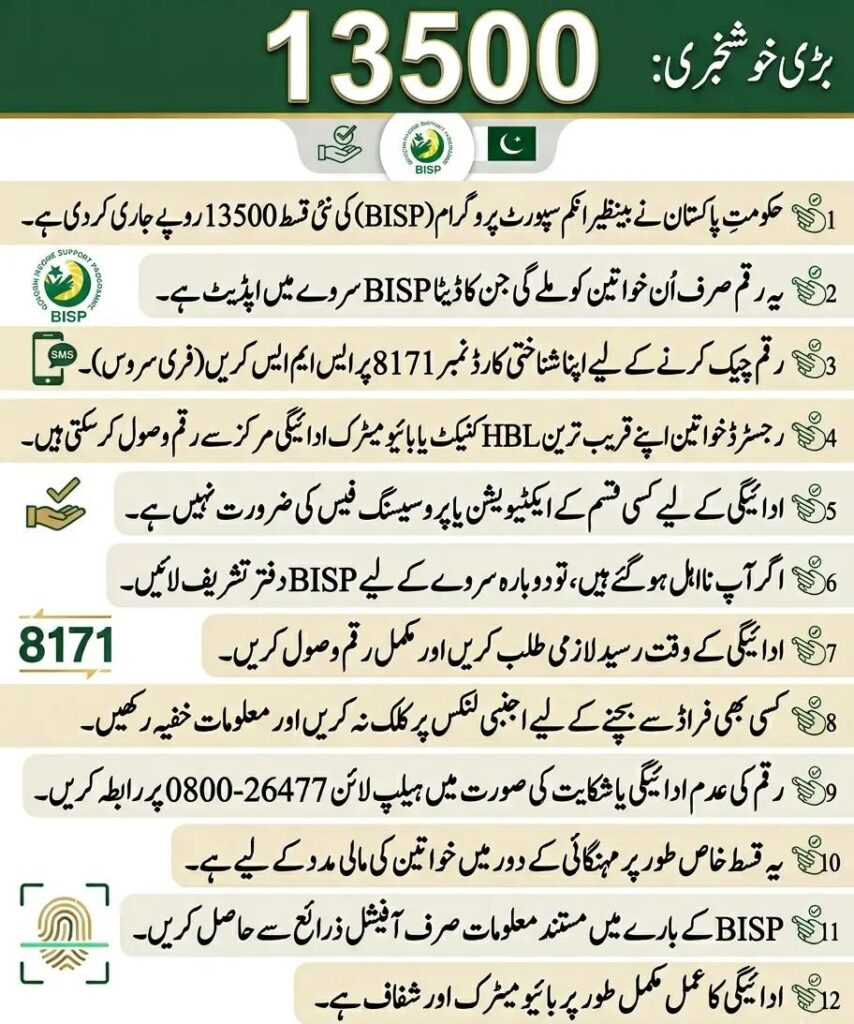 The BISP program, often linked with the Benazir Kafaalat initiative, is designed to provide social safety nets to the most vulnerable segments of society. In 2026, the payment has been adjusted to Rs. 13,500 to help families cope with the rising cost of living and inflation.